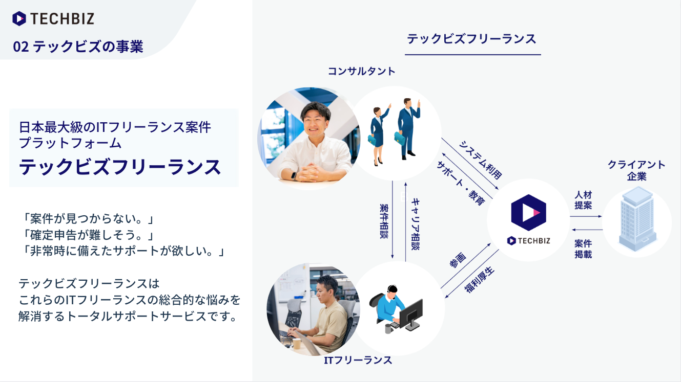 注意:直近の在籍が「フリーランスエージェント事業」に関わっているの場合のご応募は基本的にお断りしております。 ※判断が難しい場合にはhr@techbiz.comまでご連絡ください